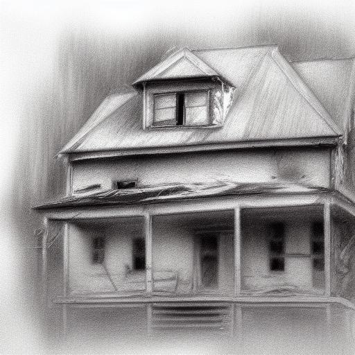 A black and white charcoal drawing of the house