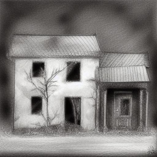 A black and white drawing of a house