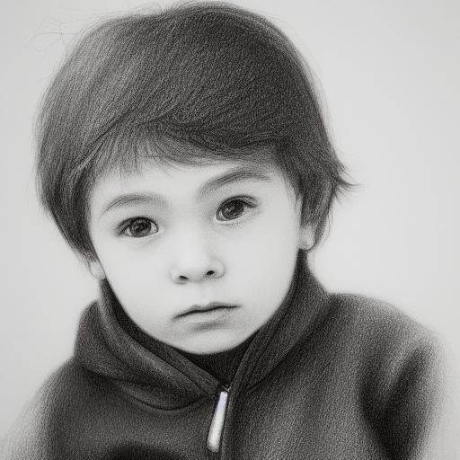A black and white drawing of a little boy kid