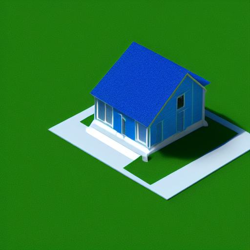 A blue house sitting on top of a green field