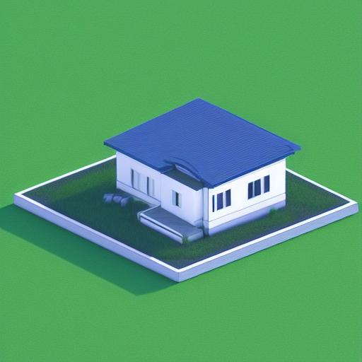 A blue house sitting on top of a green field