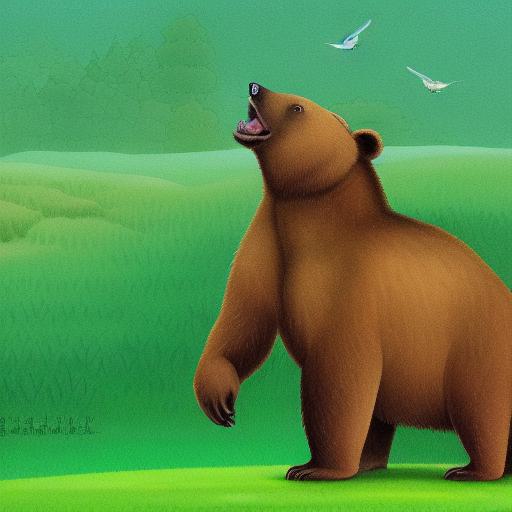 A brown bear on the lush green field