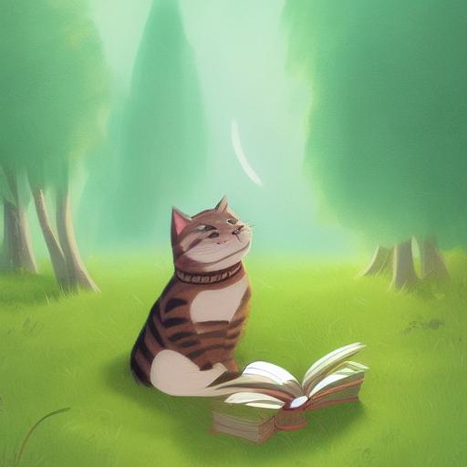 A cat reading book in the woods