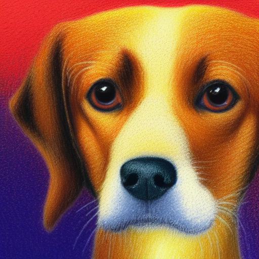 A close up of a painting of a dog with orange background
