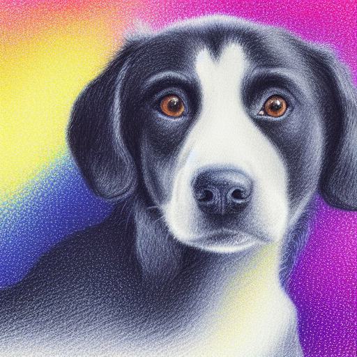 A close up of a painting of a joyful dog with white background