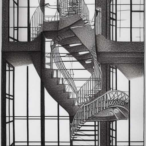 A drawing of a abstract staircases in a building