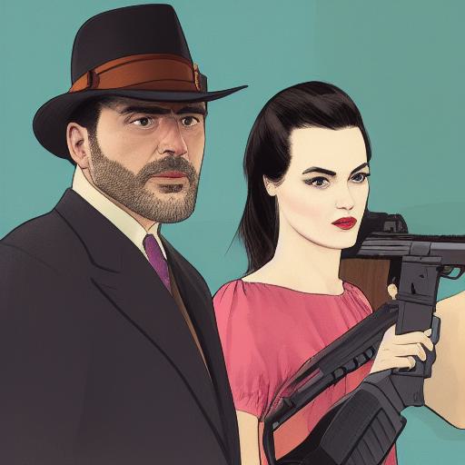 A man standing next to a woman holding a gun