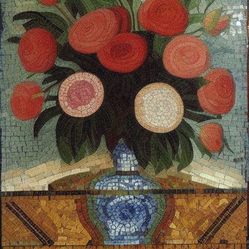 A mosaic of roses in the vase inspired by Mikhail Vrubel