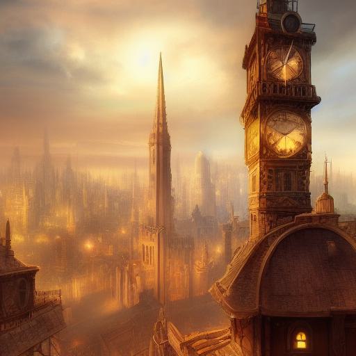 In Steampunk, the clock and clock tower are often depicted as exaggerated, ornate versions of their real-life counterparts, featuring gears, cogs, and other mechanical parts that emphasize the industrial aspect of the genre. Additionally, the clock and clock tower can also serve as a visual anchor or focal point for Steampunk artwork, drawing the viewer’s attention and creating a sense of wonder.