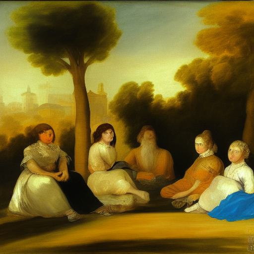 A painting of a group of people sitting on the grass by Francisco de Holanda