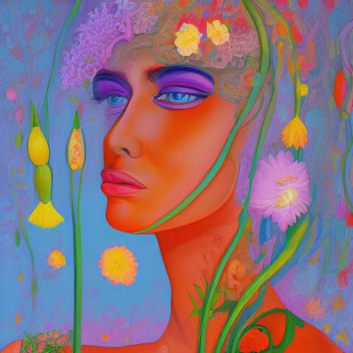 A painting of a woman and spring flowers