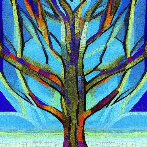 A painting of tree with sky in the background