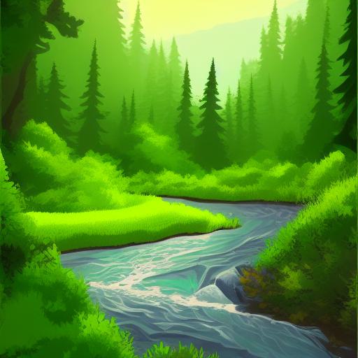 A river running through the green forest