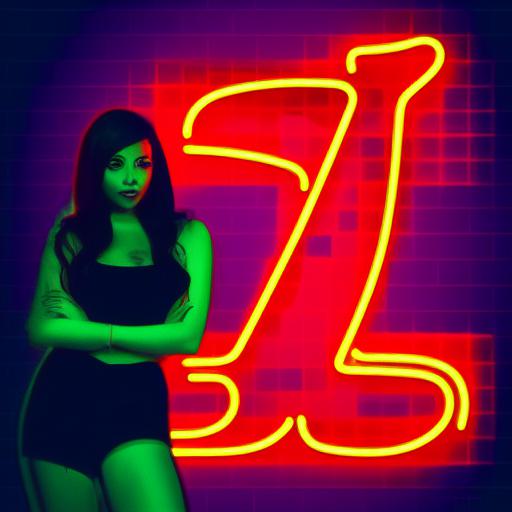 A woman standing in front of a neon sign