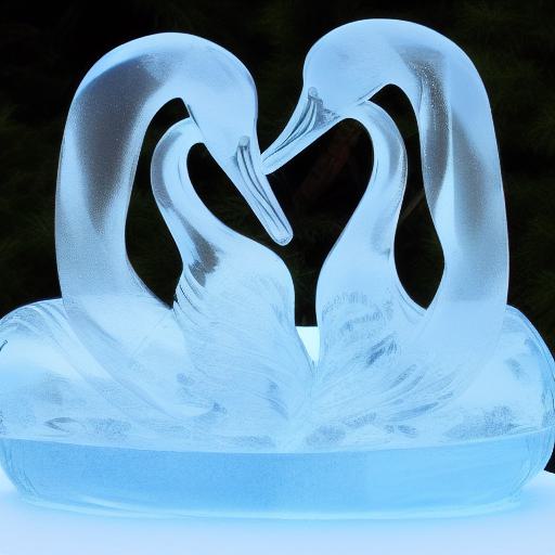 An tranquil ice sculpture of two ice made swans on a wave
