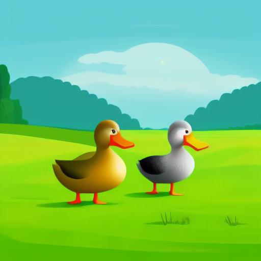 Couple of ducks standing on a lush green field