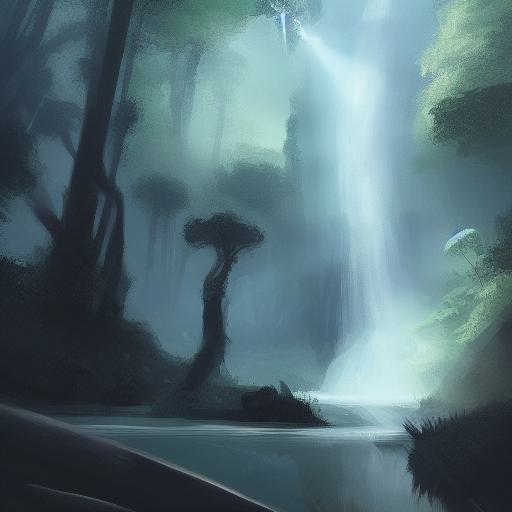 • “A painting of a waterfall in a forest”: This provides a clear subject matter for the image and a specific location. It also suggests movement, with the waterfall likely being depicted in motion.