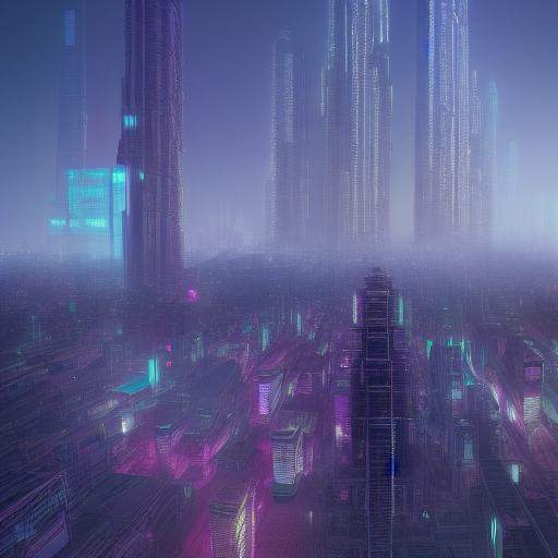 The digital city filled with tall buildings