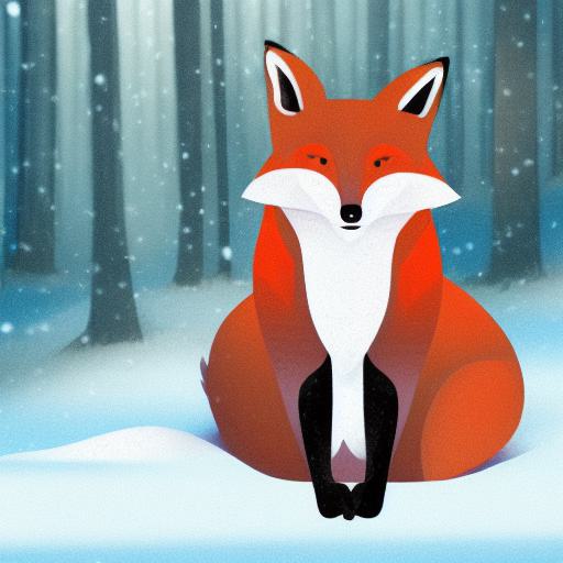 The fox that is sitting on the snow