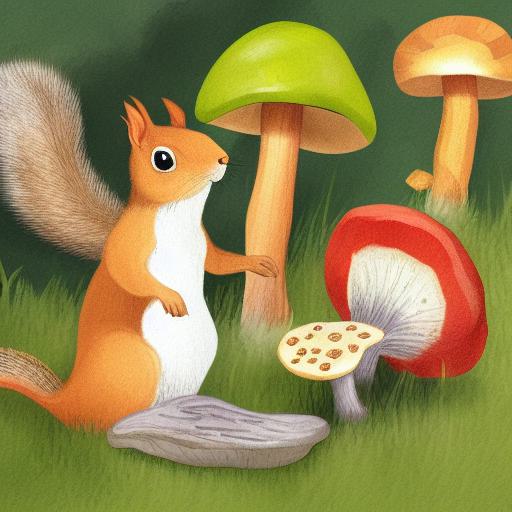 The squirrels and a mushroom