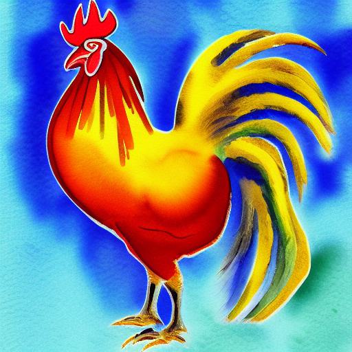 The watercolor painting of a rooster