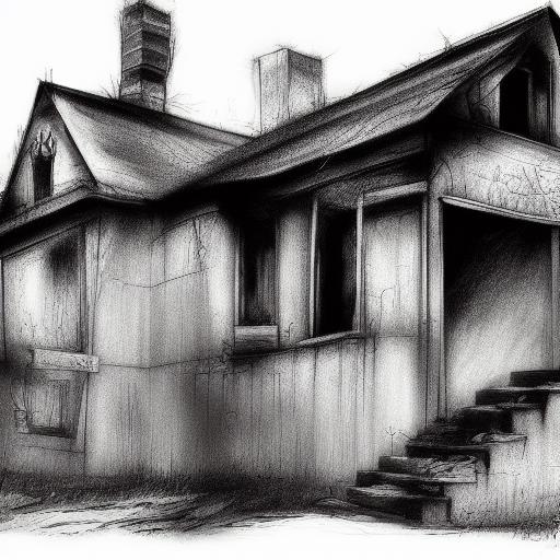 A black and white drawing of a house