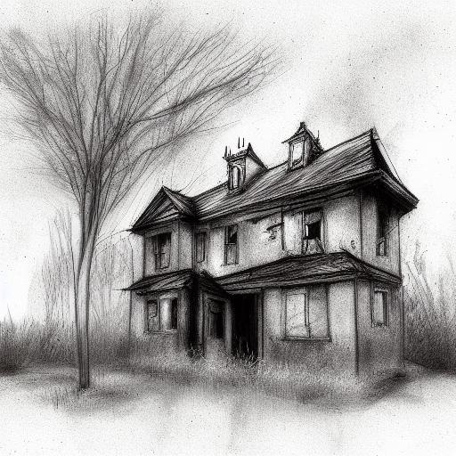 A black and white drawing of a house