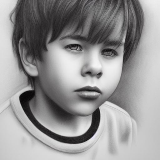 A black and white drawing of a young boy