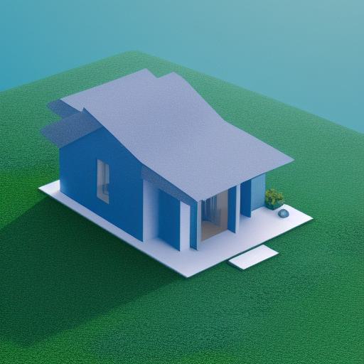 A blue house sitting on top of a green field