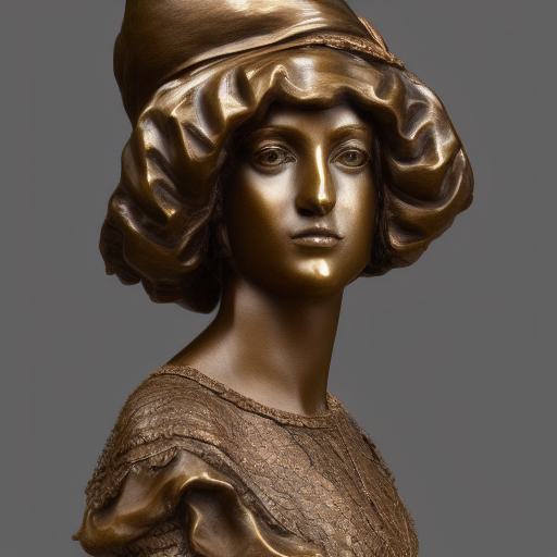 A bronze bust for a female wearing on a hat