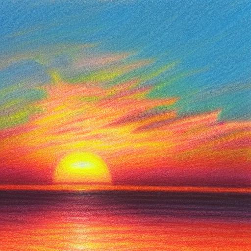 A drawing of a sunset near a sea