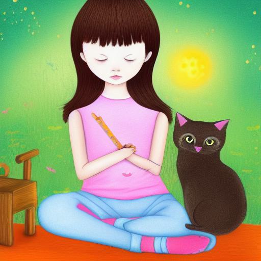 A little girl sitting next to a cat