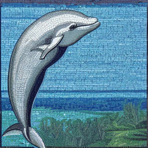 A mosaic of a dolphin in the costal inspired by Charles Ginner