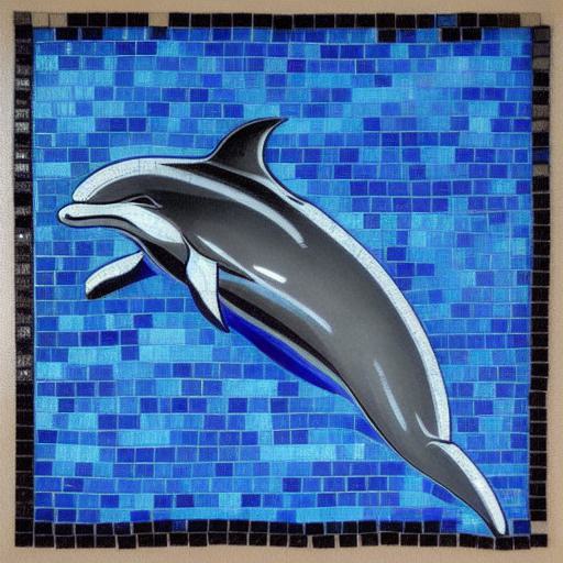 A mosaic of a dolphin swimming in the deep ocean inspired by Charles Ginner