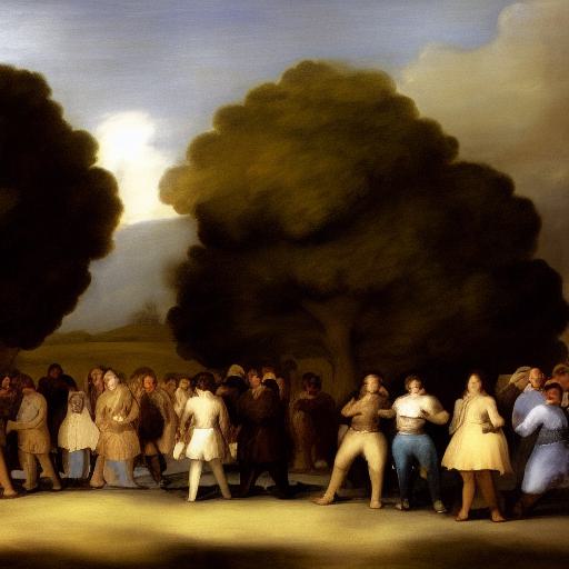 A painting of a group of people in a field with trees by Francisco de Holanda