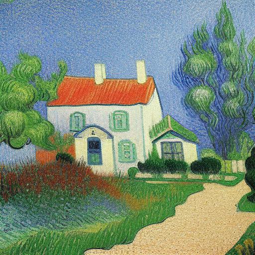 A painting of a house in a garden