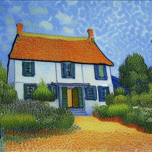 A painting of a house in garden