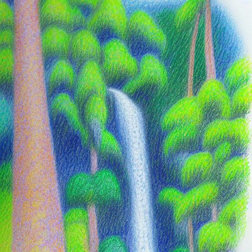 A painting of a trees with waterfall