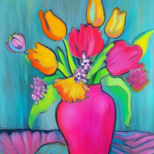 A painting of pink flowers in a vase