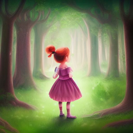 Firstly, the prompt describes a painting of a little girl standing in a forest. This provides a clear visual image for the AI model to create. The image is set in a forest, which can be interpreted in various ways by the AI model – it could be a dark and eerie forest or a bright and whimsical one. The prompt also specifies that this is a storybook illustration, which suggests that the image should have a specific style that would appeal to children.