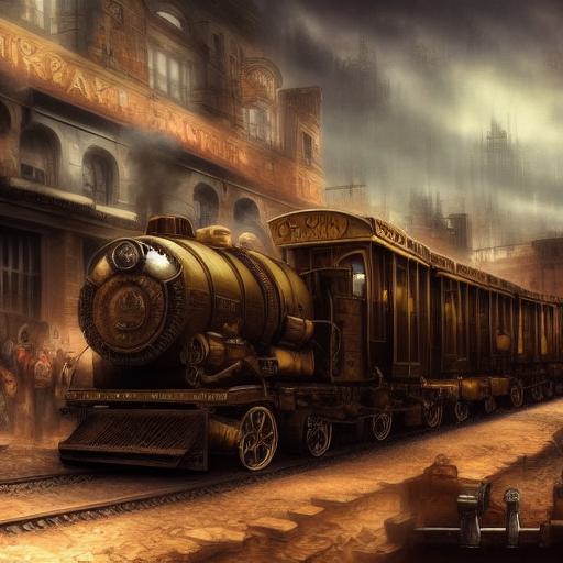 Firstly, “a steampunk train traveling through a city,” sets the scene and provides context for the image. It suggests a specific genre and style – steampunk – and a setting – a city. The word “traveling” adds motion and movement to the image.