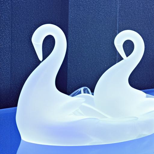 An tranquil ice sculpture of two flowing ice-made swans on a wave