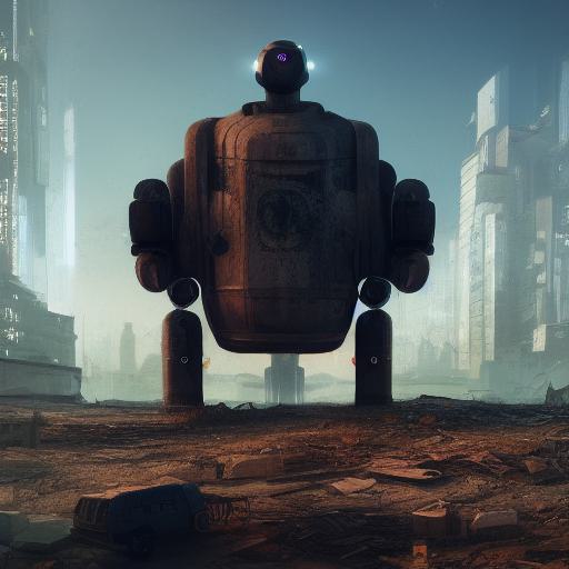 - “A robot standing on top of a pile of rubble” – This part of the prompt provides a specific visual element for the image, which is a robot standing on top of a pile of rubble. This may influence the AI to create an image that features a humanoid robot as a central character, and to include elements of destruction and decay in the background.