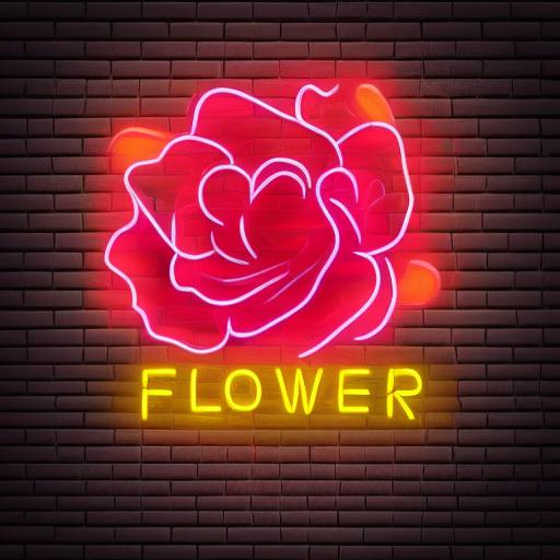 Flower neon sign on a brick wall
