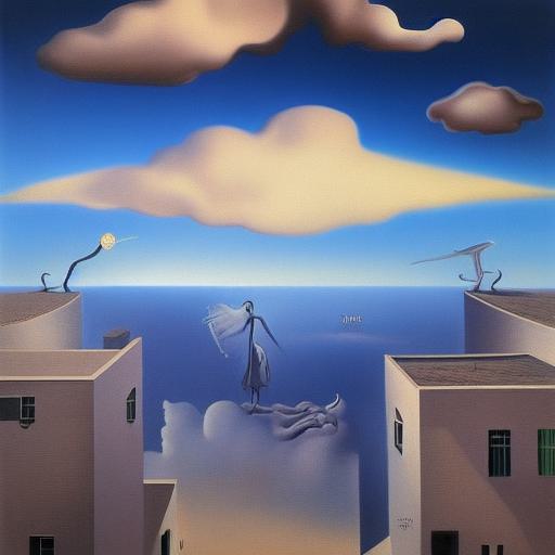 Painting on the side of a building in the sky