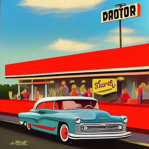 Retro painting of a car parked in front of a starlite diner
