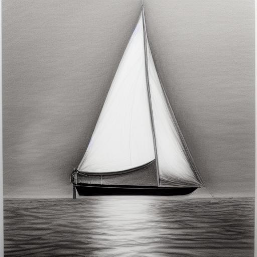 Firstly, “the black and white drawing of a sailboat in the water” – This part of the prompt describes the subject matter of the image, which is a sailboat in the water. The fact that it is described as a black and white drawing suggests that the image should have a monochromatic color scheme, using only shades of black, white, and gray.