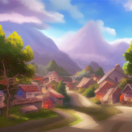 The digital art of a small village in the mountains