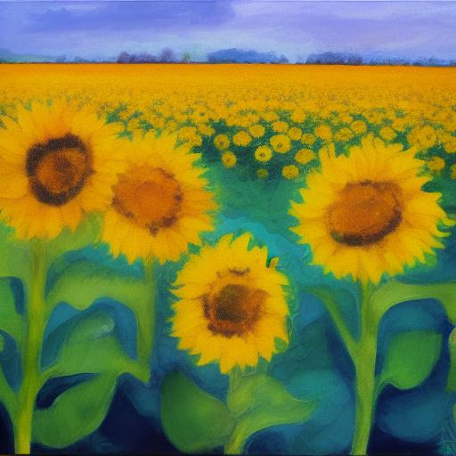 The painting of yellow sunflowers in the field