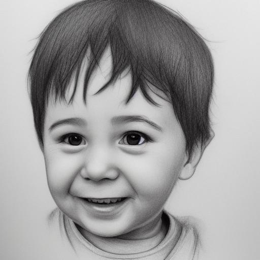 A black and white drawing of a smiling little boy